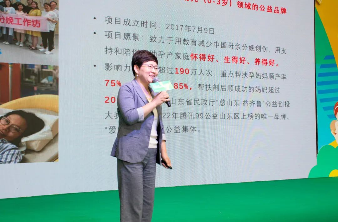 她介绍了三好妈咪公益项目成立七年来的历程,旨在帮助妈妈减少分娩创伤,鼓励自然分娩和母乳喂养。通过线上线下教育,已培训近190万妈妈,提高顺产率和母乳喂养率。