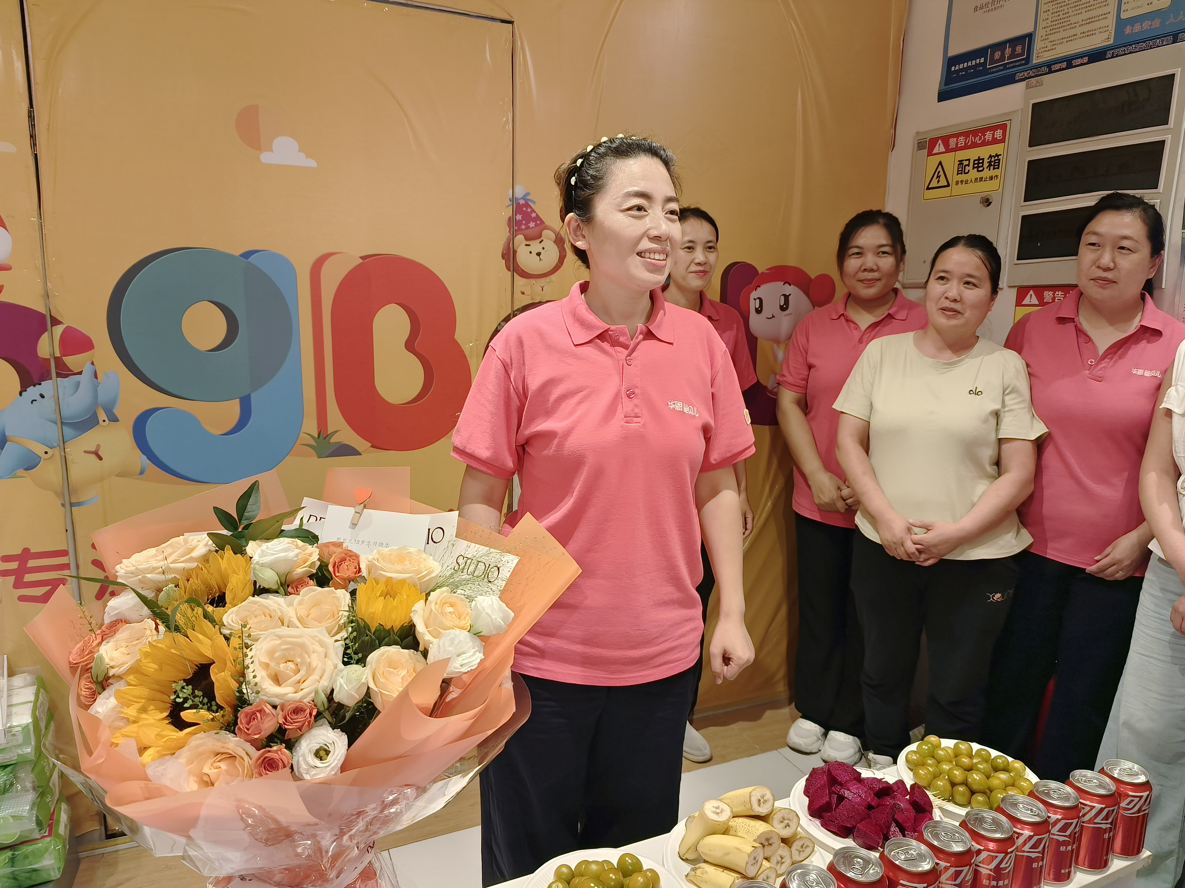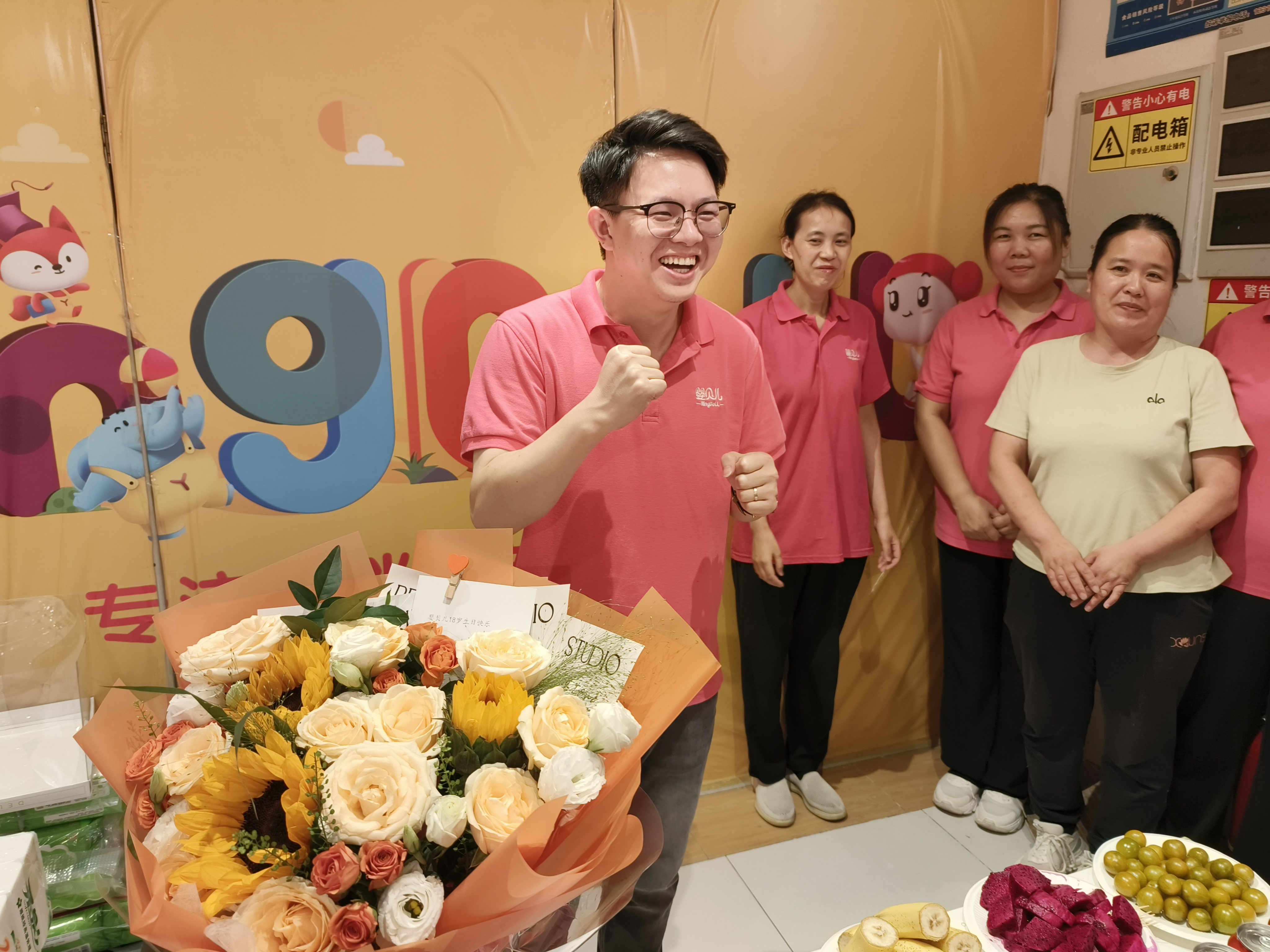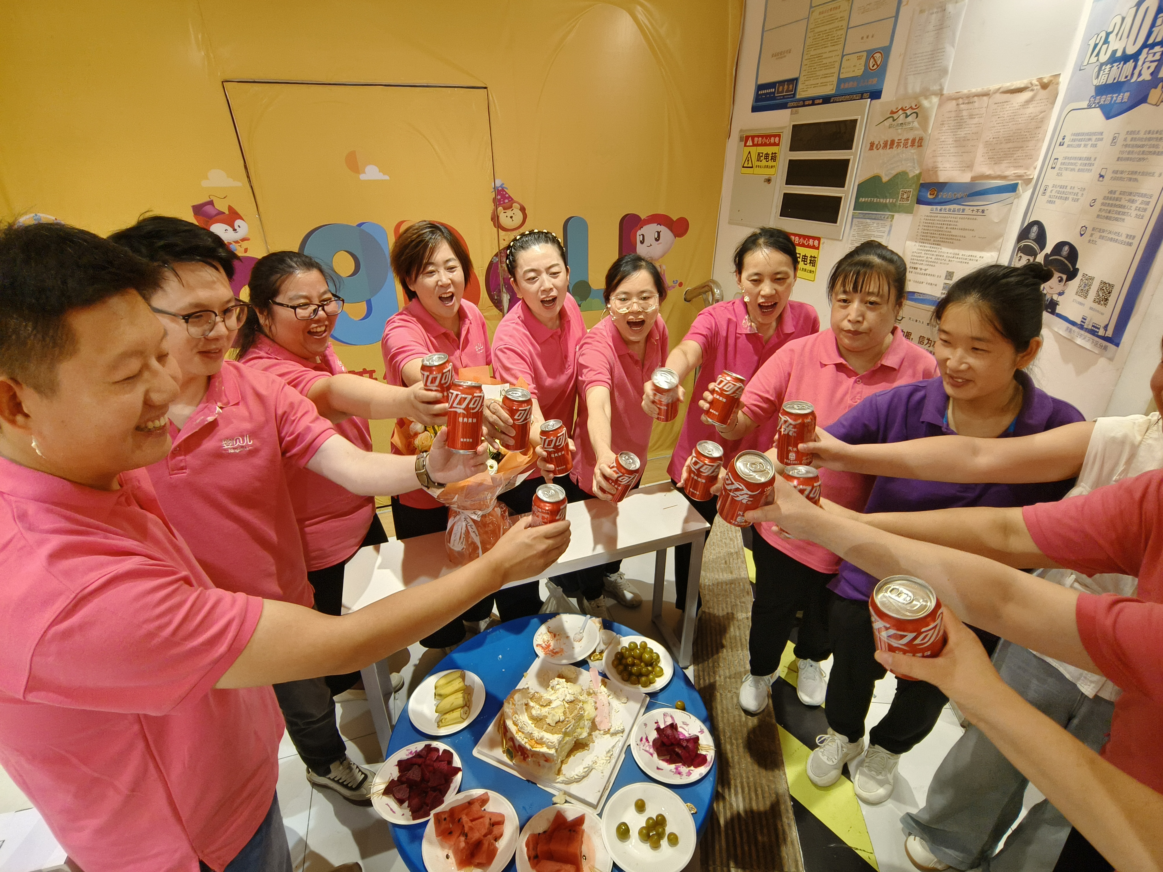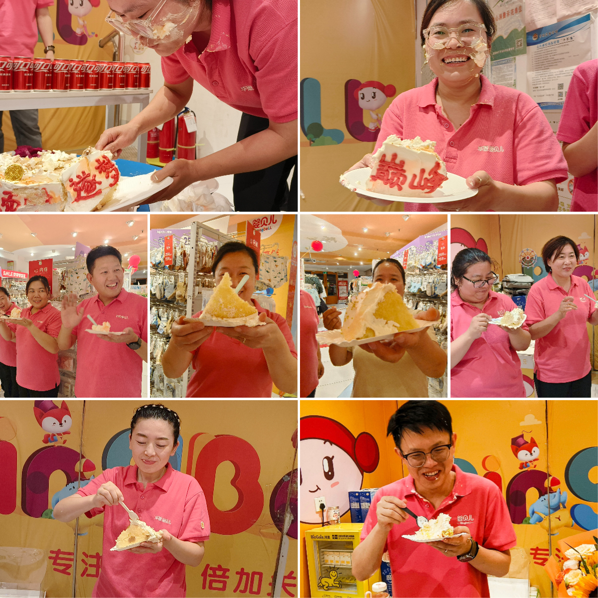 热闹的现场与白日里的忙碌形成对比 —— 白天的历山店还是 “冲刺战场”,员工们忙着卖货送货、拨打顾客回访,傍晚刚送走最后一波客流,就迎来了庆生的欢畅。