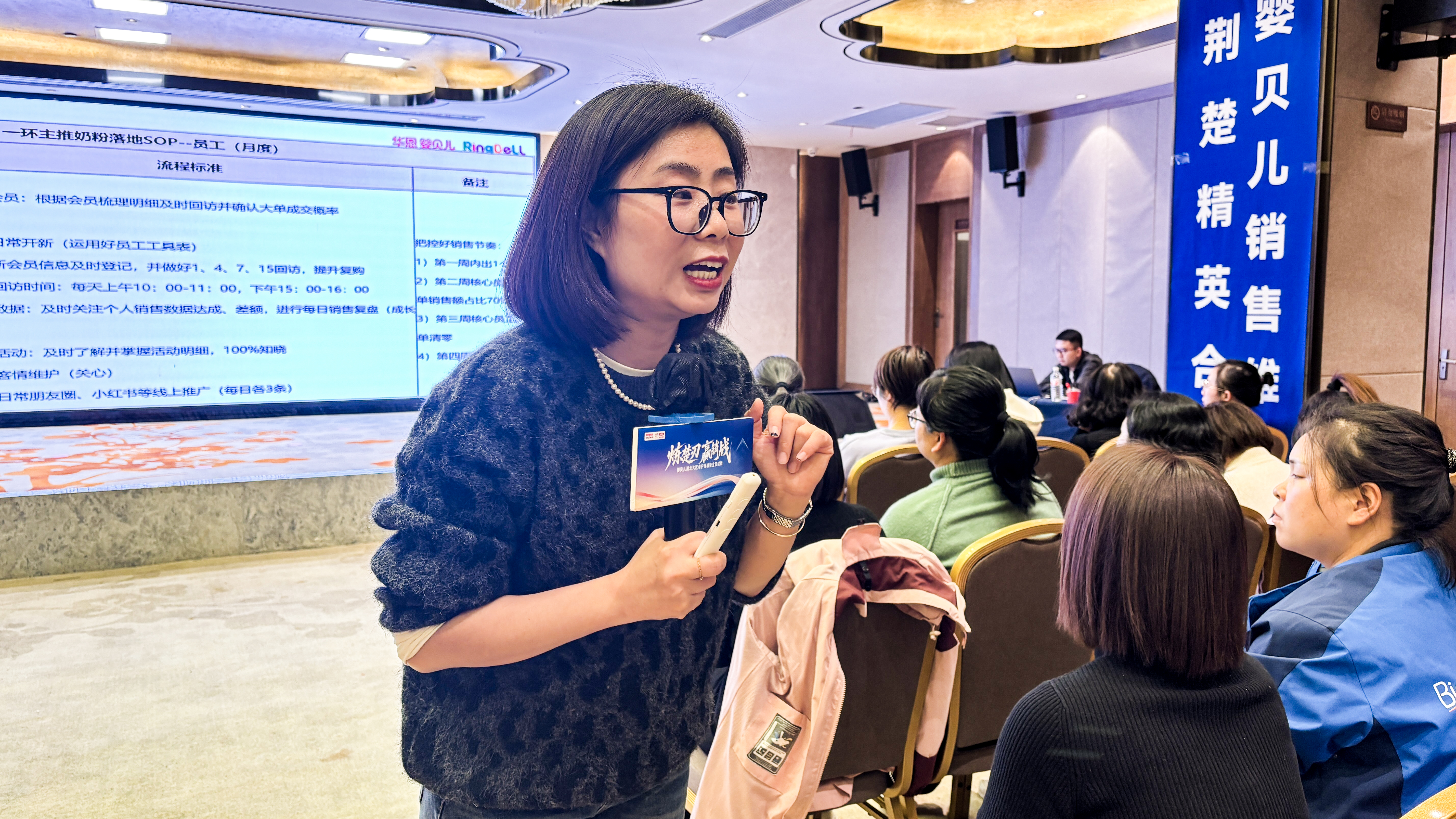 在“逼单工具及话术”环节,来自集团总部的主讲老师--薛明夏,详细介绍了新客回访计划、抓大单策略,以及如何利用赠品和稀缺感营造购买氛围,为销售人员提供了实战中的“杀手锏”。