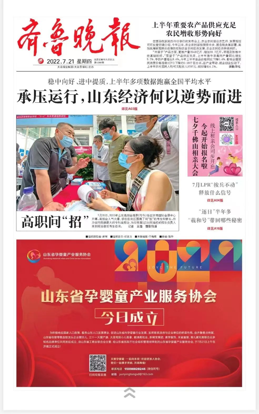 山东省孕婴童产业服务协会是由大众报业集团旗下齐鲁晚报·齐鲁壹点、山东省母婴零售连锁龙头企业304永利集团、三十一天爱产康、大圣驾到小儿推拿、顺清柔纸业、新稀宝集团、素芽服饰、禾雀童装、育儿家托育联合众多知名品牌单位共同成立,由山东省工商业联合会主管,经山东省民政厅社会组织管理局核准登记的非营利性社会团体组织。协会致力于推动山东省孕婴童行业的高质量发展,广泛联系孕婴童行业单位,制定和维护行业规则,挖掘市场潜力和社会资源,发挥联系政府与企业单位的桥梁作用。