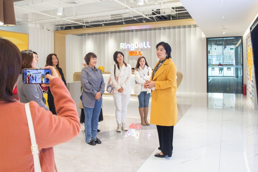 刘长燕亲自带大家参观主楼大厅、裙楼办公区以及样板间。